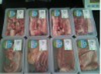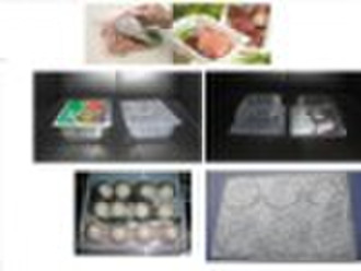 Automatic ThermoformingPacking Machine(DDLZ 420/520/320) This machine is an integration of hard plastic tray forming, gas injection,sealing, cutting,.By changing moulds, it is suitable for a variety of foods, such as meat ball, meat pie, fresh meat, fish ball,sushi, cake, moon cake, fruits, biscuit ,cookie, pastry etc. Characteristics: 1.Mitsubishi Servomotor, Touch screen and PLC control system make operating and adjusting easily. 2. With a world first-class vacuum pump made in Germany, advantages include high degree of vacuum, steady quality and good durability. 3.The assembling moulds, which can be replaced easily, and different moulds can be installed on one machine.So that, the function of packing many kinds of foods in one machine is realized. 4. The mould is equipped with a cooling system. 5. Automatic film feeding, and gas filling machine can be installed on the machine. 6.With advanced transverse and longitudinal cutting system, making end products seperated with each other, and are of very good packaging effect. 7.Has a scrap recycling system, good environment and health can be maintained. Specification DDLZ 420C Width of Upper Film 392mm Width of Lower Film 422mm Vacuum ≤200Pa Compressed Air ≥0.6MPa Cooling Water ≥0.15MPa Power Source 380V Weight of Whole Machine 1700KG Overall Dimensions 6150x1200x1900mm